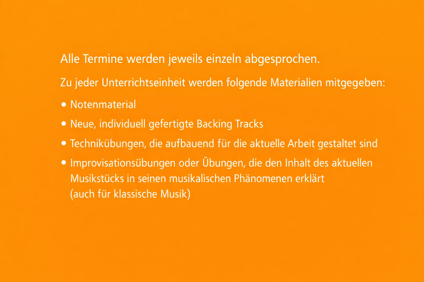 Oder nehmen Sie zum Testen gleich eine Probestunde. Kosten: 40 Euro inklusive Notenmaterial und Backing Track zum Mitspielen.